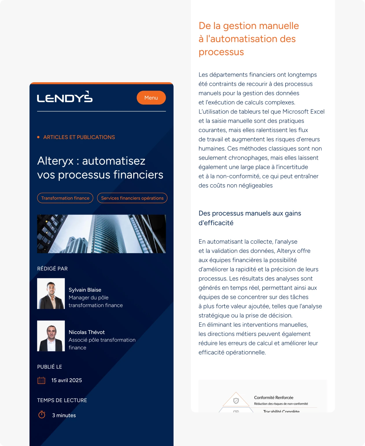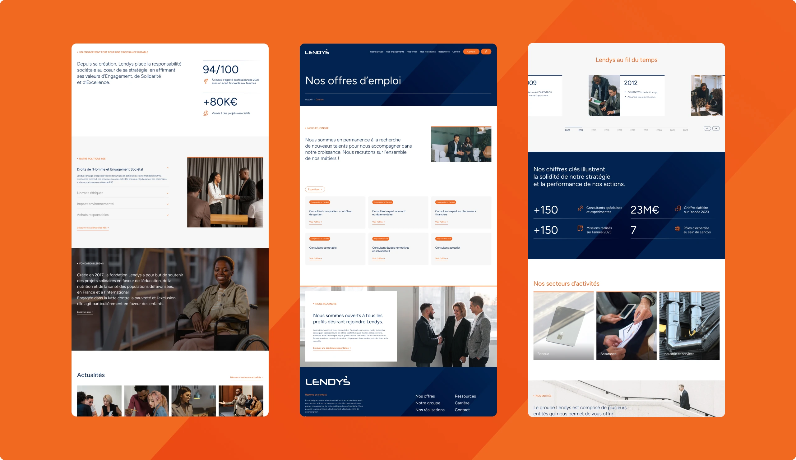 Pour soutenir l’ambition du cabinet, nous avons construit un site flexible, capable d’accueillir de nouvelles fonctionnalités — notamment l’évolution de la relation candidat et les futures briques de services en ligne. Ce socle permet à Lendys d'avancer sereinement : le site devient un levier de croissance, et non une contrainte technique.