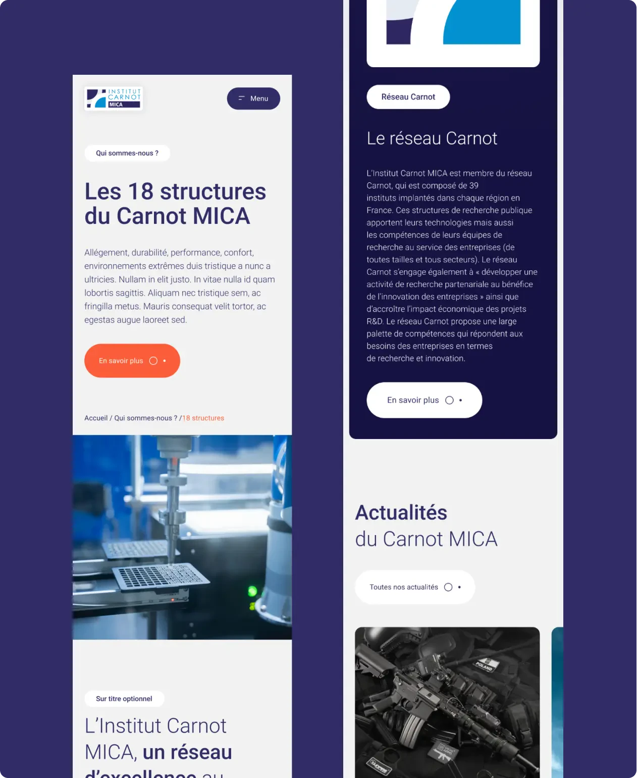 “The website’s art direction was conceived as a tool for building trust: a clear, refined, institutional and modern design, aimed at reassuring industrial stakeholders. Our objective was to highlight Carnot MICA’s ability to support companies through its scientific expertise and research infrastructures." Axelle, Artistic Director